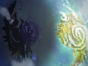 Island of Darkness is a huge island that got split from Ninjago after the first defeat of Overlord. Since then Overlord started living there. In the second season, Garmadon found the island. The Temple of Light and The Celestial Clock are located in the mountains.