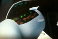 As a normal ninja, Zane has the classic ninja wrap first used in the Ninja theme from 1998, in white. Zane's face print (,which would normally be covered by the ninja wrap with the exception of his eyes,) is made up of two black eyes with white pupils, a straight line for a mouth, a line below showing a chin, and two eyebrows pointing downwards. His torso, is a white ninja robe with black hands and no back-printing. The printing that is on the front, reveals light grey clothing under his robes. Also on the torso, is a little golden emblem, which is most likely a symbol of Ice in Ninjago, that also appears on Zane's spinner. Zane's legs in this variation are white with light grey knot pattern printed on the hips and legs.